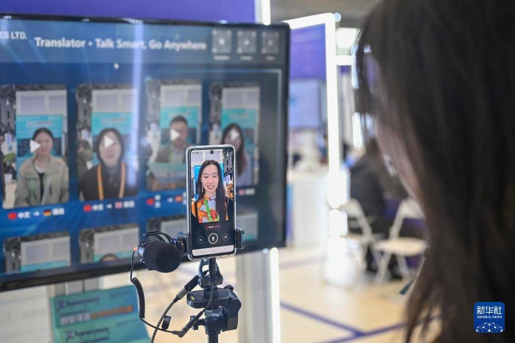 11月9日,观众在创新孵化展区体验“翻容译语”助手。