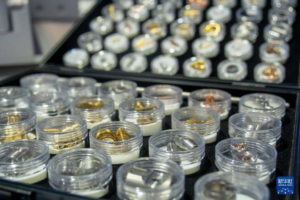 11月9日在创新孵化专区拍摄的精密零件展品。